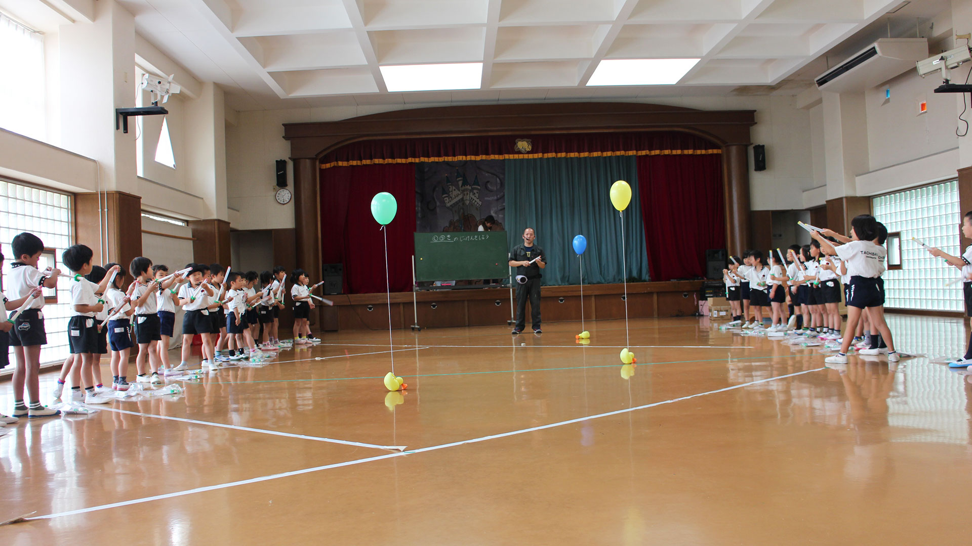 246㎡の広いホール。広いステージでの式典や発表会、雨天時には体育館として幅広い活用ができます。