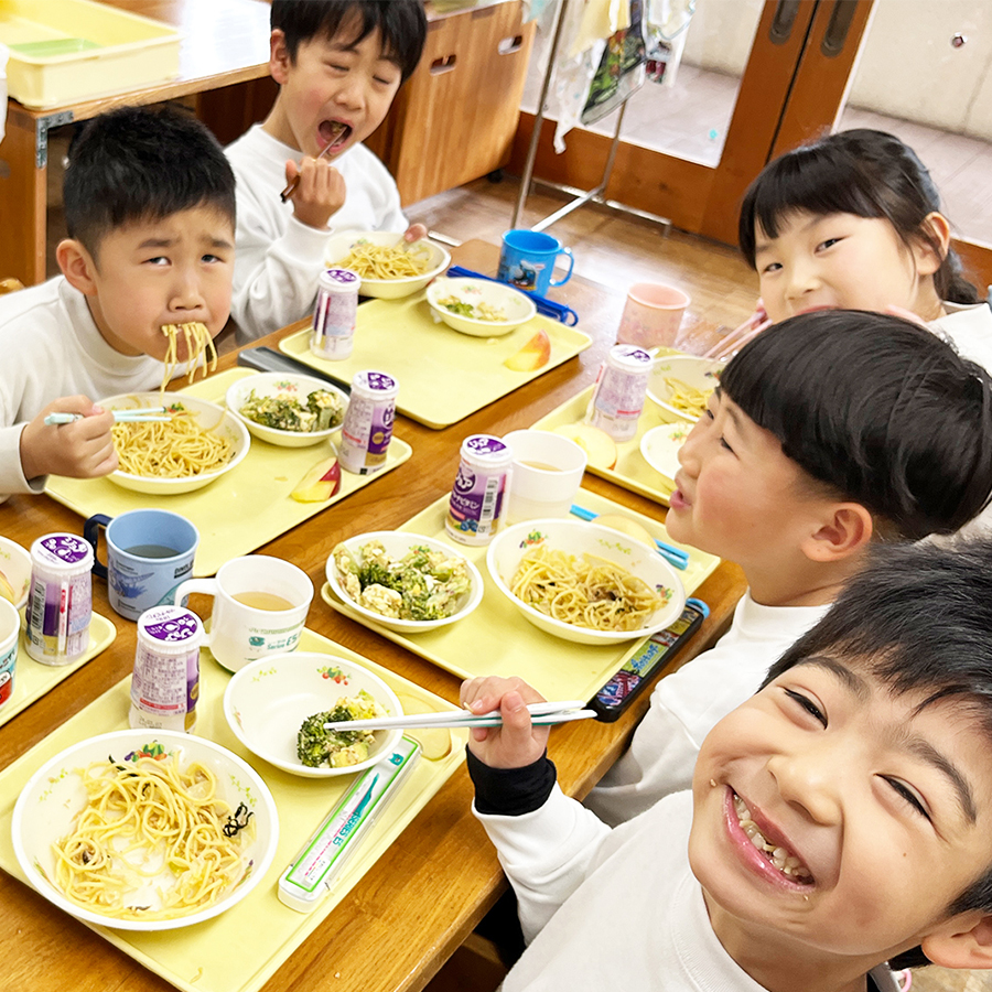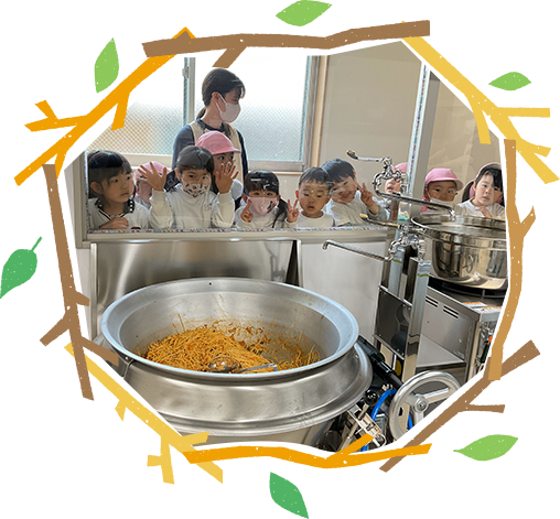 毎日異なった献立を専属の管理栄養士が考え、調理師たちが愛情をこめて調理します。旬から地域の名産物まで毎食自慢の給食です。