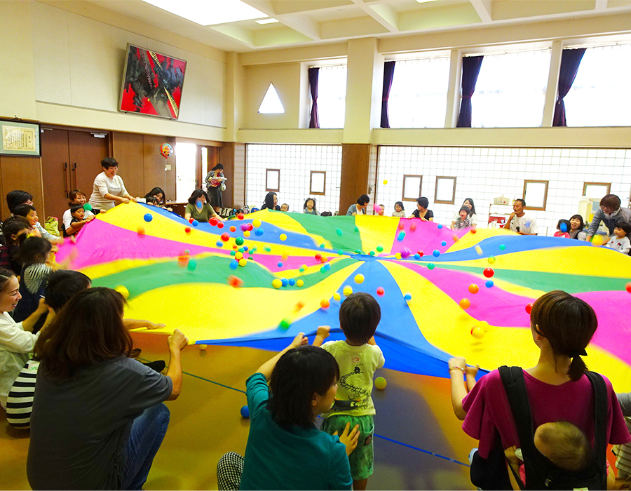 現在、子どもと一緒に遊ぶ場所がなく、保護者同士の繋がりが持てないことが問題になっています。そこで、橘幼稚園では、安全で楽しい遊び場としてだけでなく、保護者同士の楽しい繋がりを持てるようにと、すくすくルーム[未就園児教室]として、色々な楽しい企画をたて、多くのご家族の方々に楽しい時間を過ごして頂いております。